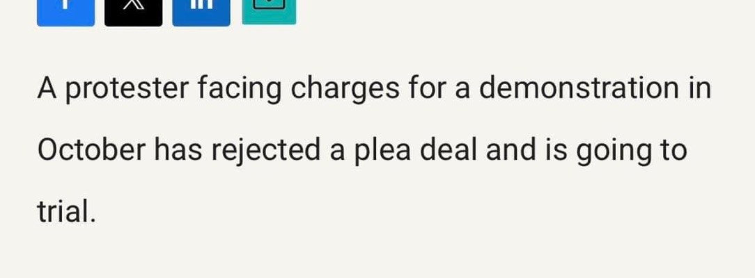 A protester facing charges for a demonstration in October has rejected a plea deal and is going to trial.